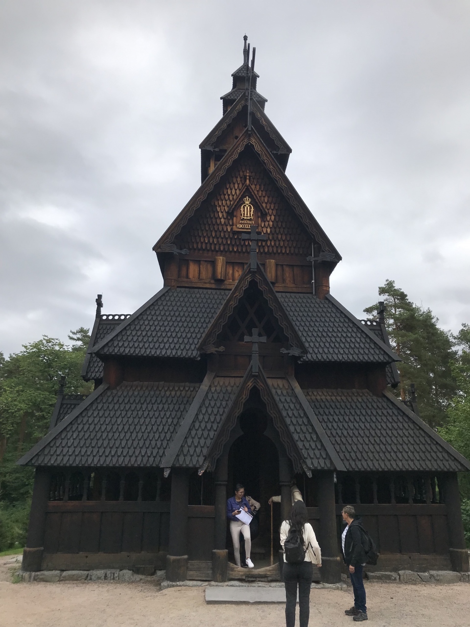 海関係の博物館があるビィグドイ地区にあります。まずはノルウェー海洋博物館、コンチキ号博物館、フラム号博物館 の3つ博物館を見た後にまた30番のバスに乗って市街の方に少し戻る形で、このノルウェー民俗博物館を訪れました。広大な森のような敷地にノルウェー全土から集められた家屋が点在しているので、迷子になりそうでした。特に良かったのはスターヴヒルケという木造教会の教会で、木造の教会を始めてみました。外観は黒光していますが、教会内部の木に描かれたキリスト関係の絵はなんとも言えない趣がありました。
