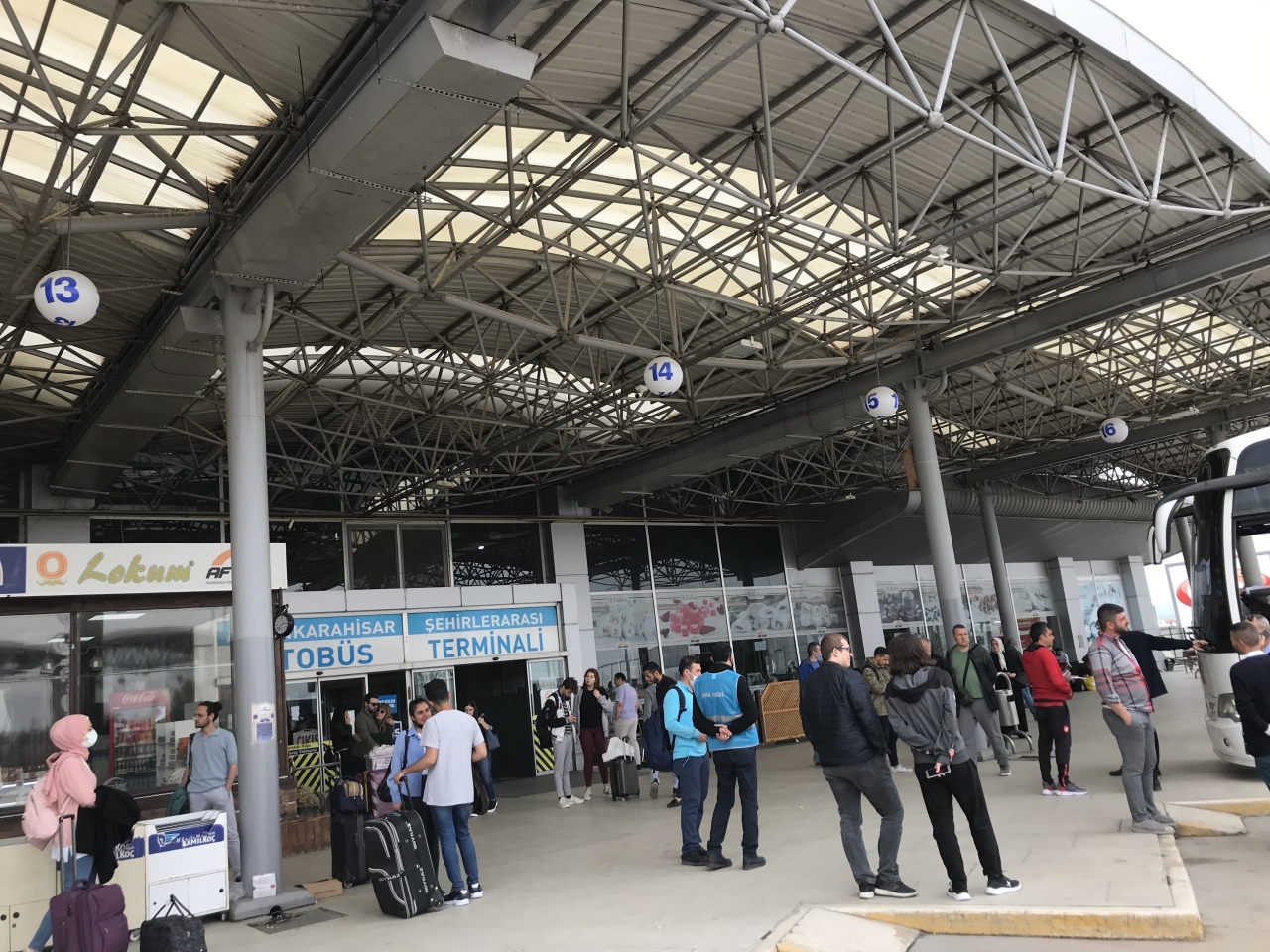 イズミールから約4時間半で到着しました。アフィヨンの市内へは長距離バスが到着した馬車の反対側から市バスに乗って行くことができます。交通カードもありますが、現金で支払い可能です。エマネットという荷物預け所があるので、そこで荷物を預けて手ぶらで市内へ行くこともできます。市内からは市バスかミニバスで戻ることもできます。