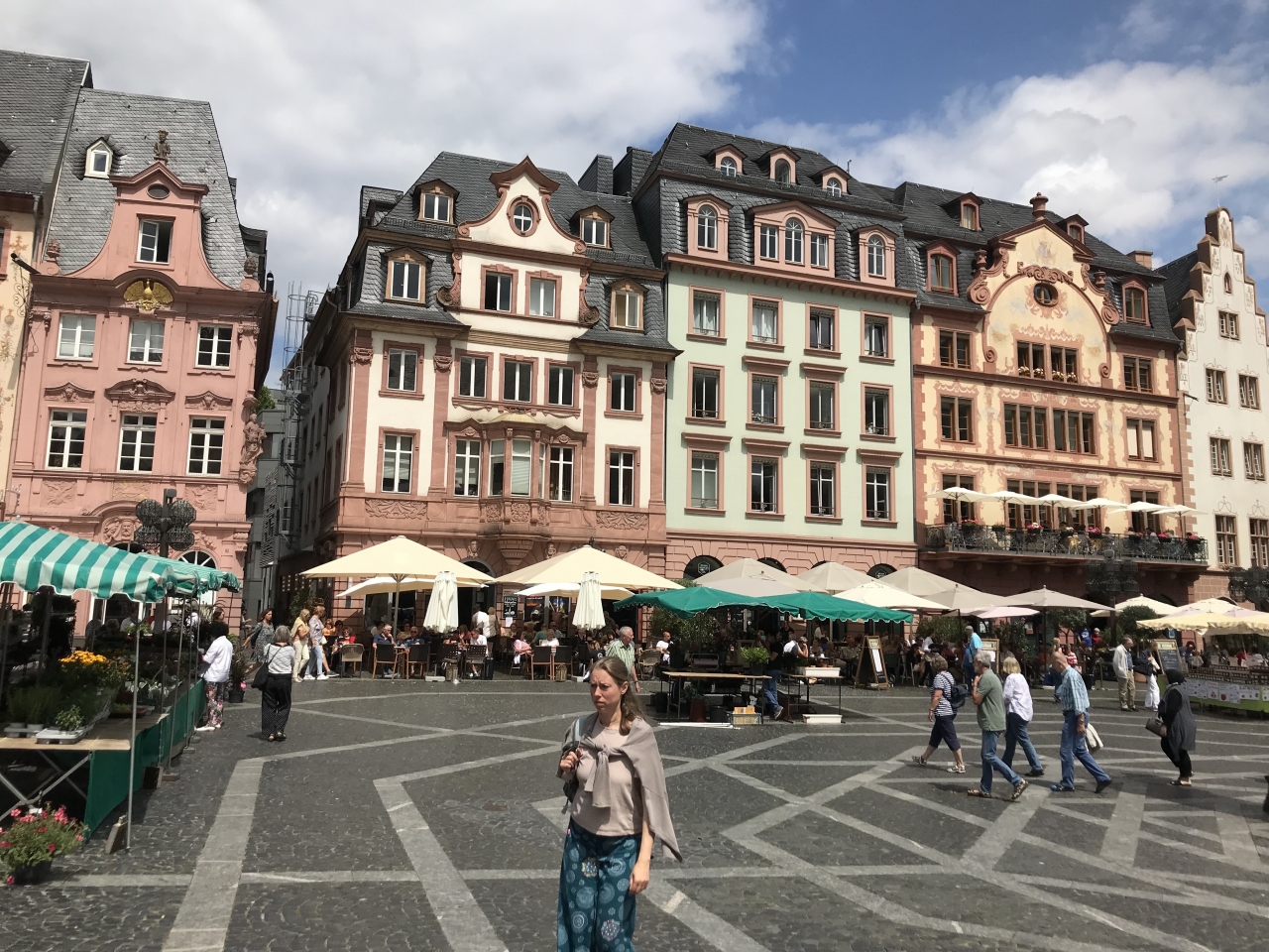 中央駅から丘の上にある聖シュテファン教会のシャガールのステンドグラスを見てから、大聖堂へ回りました。大聖堂の前に広がるのがこのマルクト広場ですが、沢山の人出で大聖堂の入口が分かりづらくて少し苦労しました。どうも訪れた土曜日は朝市が立つようで、それで混雑していたようです。活気があって良かったです。