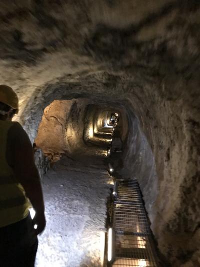 ピタゴリオの街中から、ピタゴリオの考古学博物館・パナイア スピリアニス修道院・エフパリノスのトンネル というルートを徒歩で巡りました。5月末の暑い日だったので、帰りは熱中症になりそうでした。入場料は8ユーロでした。トンネルに入るにはヘルメットを被らなければなりません。途中、急に低いところがあり、何度かヘルメットを当ててしまいました。ヘルメットを被っていてよかったです。懐中電灯を持って係員の方が先導してくれました。元々は水道トンネルだそうです。