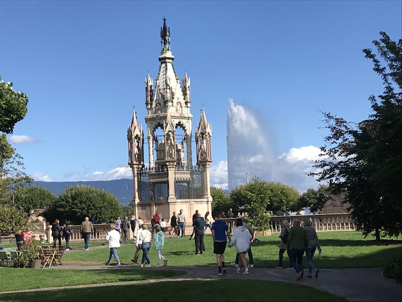 レマン湖の湖畔にありました。クルーズ船の乗船場所の近くにある公園のようなところに建っています。記念碑というよりも立派な霊廟です。ブリュンスウィックという貴族の霊廟だそうで、とても立派なものです。ジュネーブ大噴水も一緒に見えます。