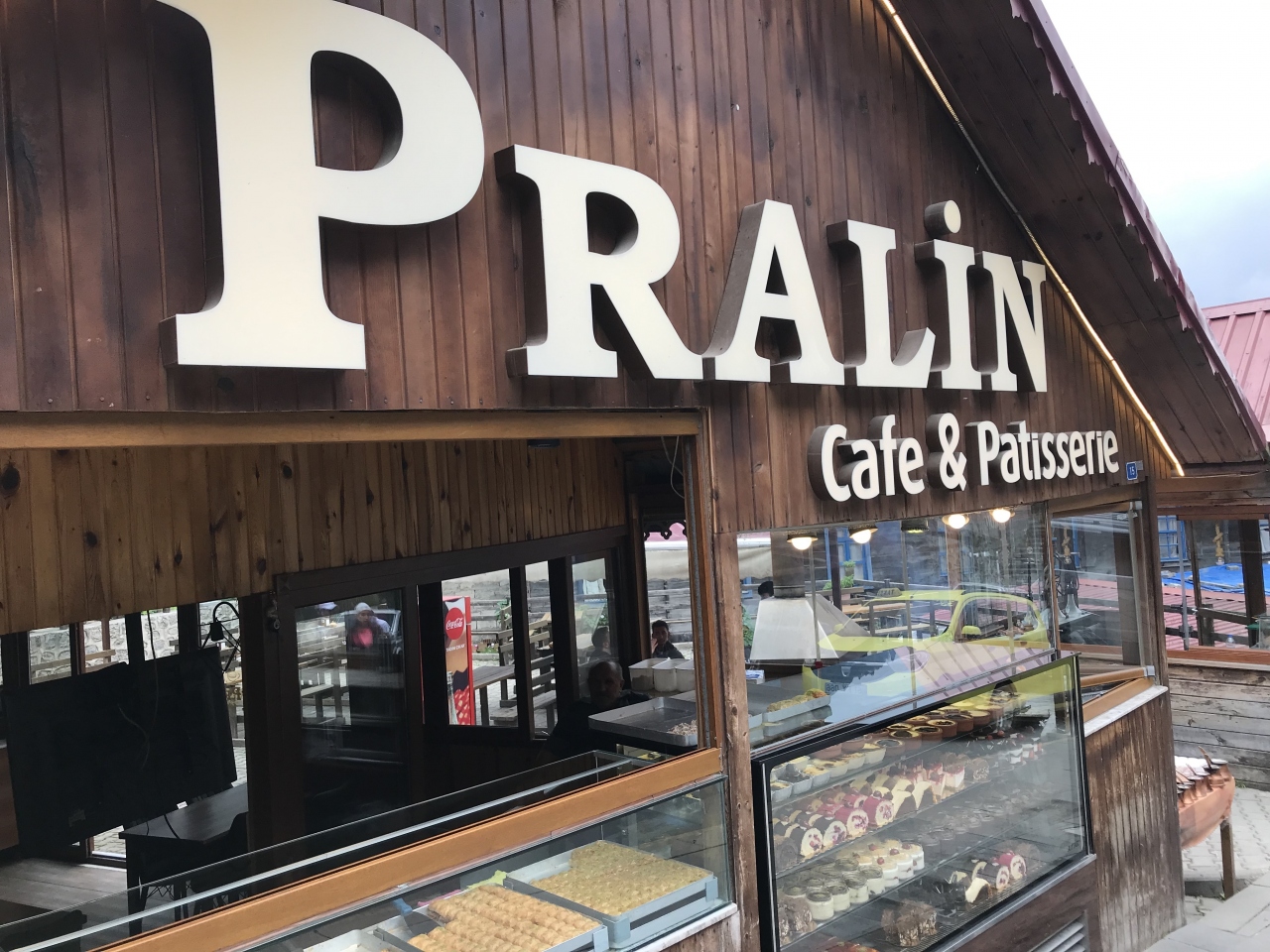 アイデル高原にあったカフェです。ミニバス乗り場からGelin Tülü滝に向かって坂を登って行くと途中の道の両側はペンションやカフェなどが並んでいます。Gelin Tülü滝を見た帰りに、ここでミルクプリンを食べながらお茶をしたのですが、そんなに景色も良いわけではないし、値段も高かったので、他のお店にすれば良かったと思いました。
