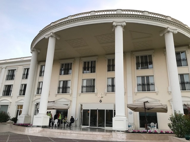 トルコのリゾート地アンタルヤの空港近くのホテルです。近くと言っても歩くと30分以上掛かるようなので、ホテルの無料の送迎バスを利用しました。深夜に空港に着きましたが、電話したらちゃんと迎えに来てくれました。深夜到着なので市街のホテルは諦めて、空港近くのこのホテルにしました。外観は宮殿みたいな感じです。客室もちゃんとしていて、サービスも良かったです。