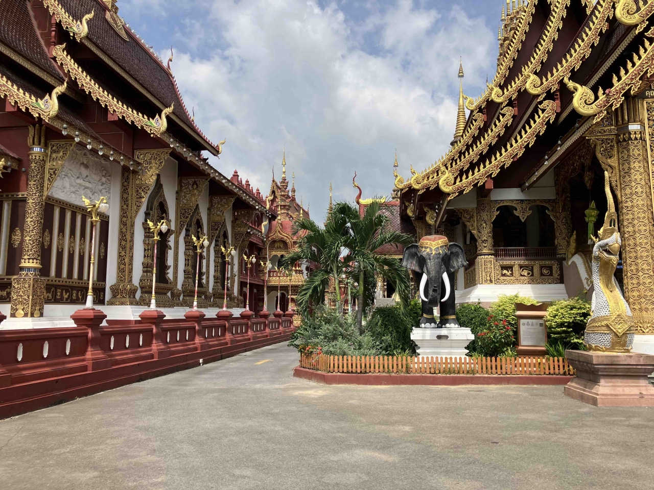 チェンマイ旧市街の北の門のチャーンプアック門から南に少し言ったところにあったお寺です。そんなに有名なお寺ではないようですが、境内に入ってみると結構大きなお寺でした。建物に鈴が付いているようで、暑い日でしたが鈴の音のおかげで涼しく感じました。東へ行くとワット チェンマンという有名なお寺があります。
