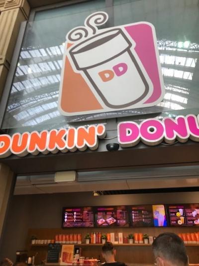 フランクフルト中央駅のコンコースにあったダンキンドーナツのお店です。ドイツの大きな駅は日本の駅とは雰囲気が違って開放的な感じがします。コンコースに色々なお店がありましたが、ちょっと小腹が空いていたので、ここでドーナツを購入して食べました。疲れた体に甘いドーナツは効果的でした。