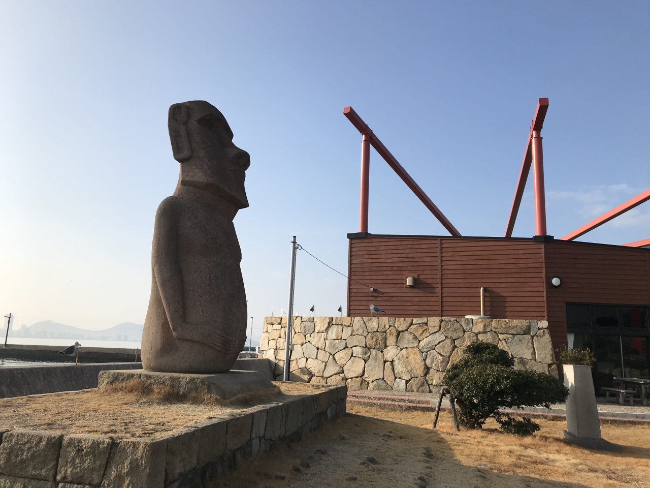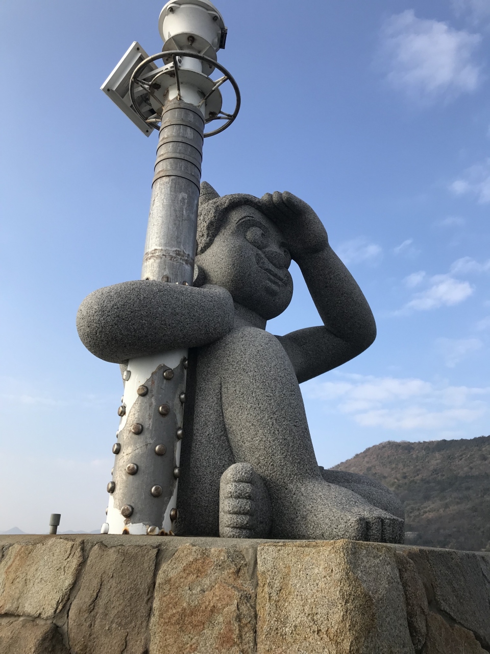 高島港からフェリーで女木島に到着すると目の前にこの高松市鬼ヶ島おにの館 があります。鬼ヶ島大洞窟 に行くバスのチケットは、ここで購入します。コインロッカーや電動機付き自転車のレンタルもここです。コロナのせいだと思いますが、カフェなど施設は全部閉まっていて残念でした。