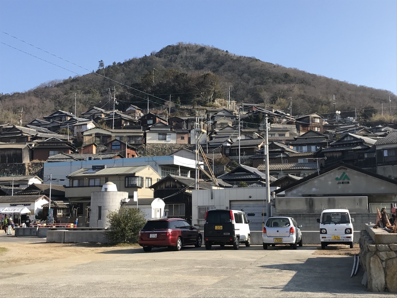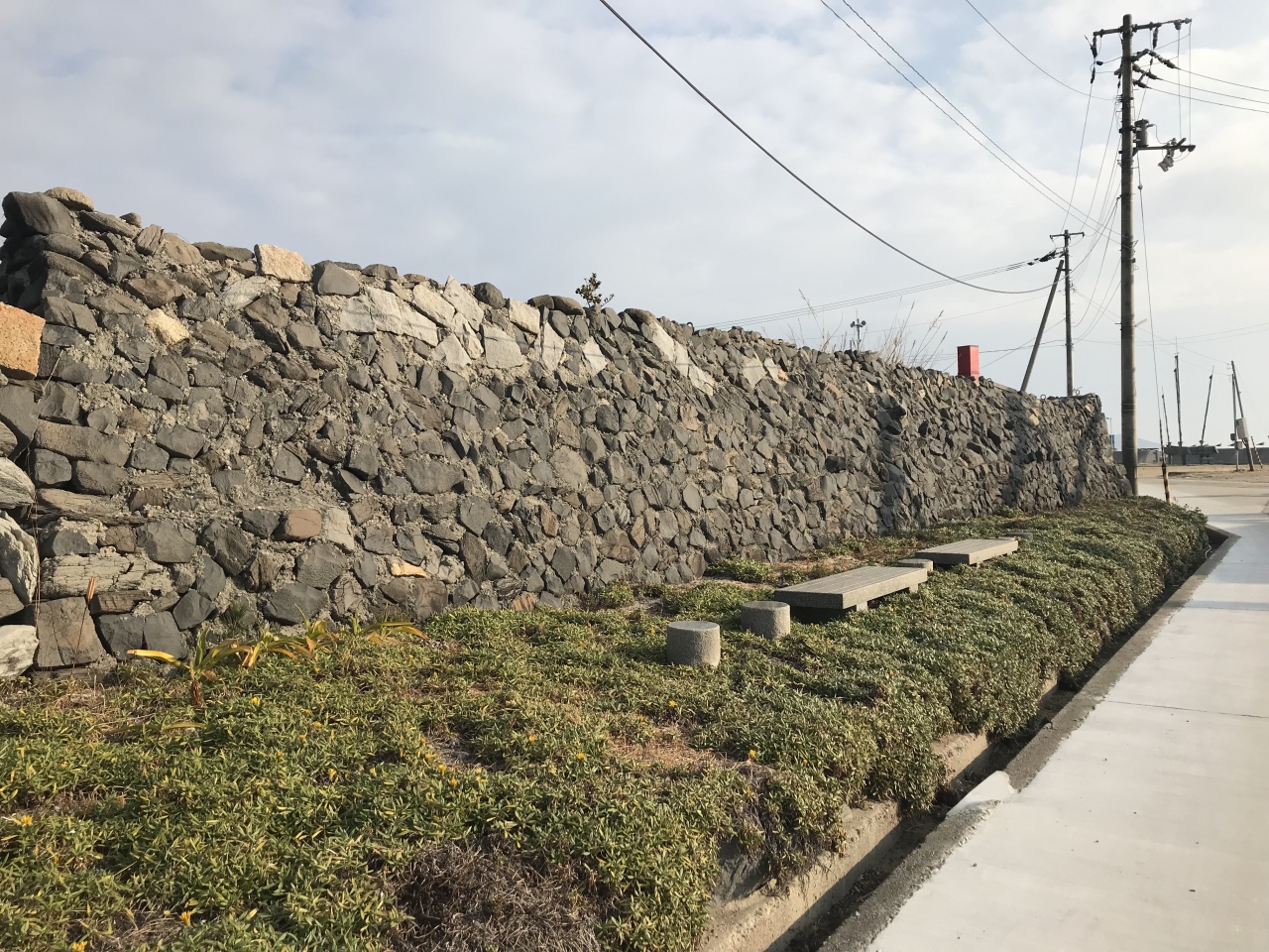 高松港から高松港から雌雄島海運のフェリーで20分で女木島に到着しました。フェリー乗り場のすぐの場所に石垣がありますが、それがこのオーデです。単なる石垣トイtぅて仕舞えばそれで終わりですが、風が強い女木島で家屋を守るために作られたそうです。