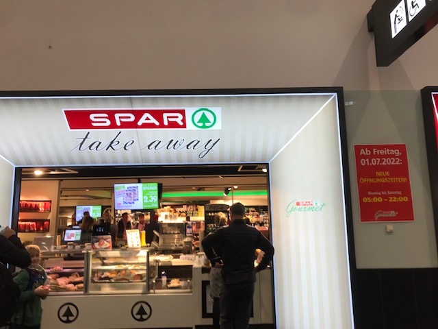 ウィーン空港で手荷物を受け取って空港の建物内に入ります。右の方に進んで行くと、鉄道駅に向かうための下りの長いスロープがあります。そのスロープの入り口近くにこのスーパーマーケットがあります。ウィーン中央駅ならば空港駅からそんなに離れていませんし、ウィーン中央駅にもスーパーマーケットがあるので良いですが、今回はザルツブルグへの長距離電車に乗る前に、ここで飲み物やお菓子などを購入できたので、とても年利でした。