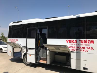 トルコ共和国の東部、南東アナトリア地方にあるアドゥヤマン空港からアドゥヤマンの市街へ移動するためにこの空港バスを利用しました。アドゥヤマンへ行った目的はネムルート山に登るためです。トルコの空港バスはHavas(ハバッシュ)という公営バスが多いですが、このアドゥヤマン空港のバスは私営のバスでした。空港から約30分で市街中心部に到着しました。