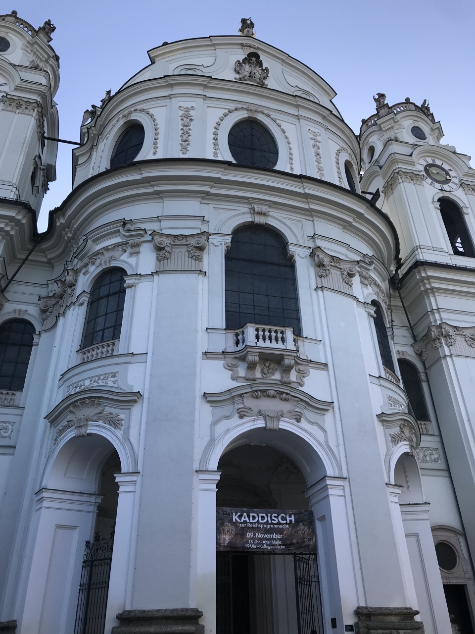 ホーエンザルツブルク城へのケーブルカー乗り場の近くにある教会です。ケーブルカーを降りてから行ってみました。そんなに大きな教会ではありませんでしたが、どこか趣がある感じでした。近くに墓地がありましたが、花壇に花が植えられていて、あまり墓地という感じがしませんでした。