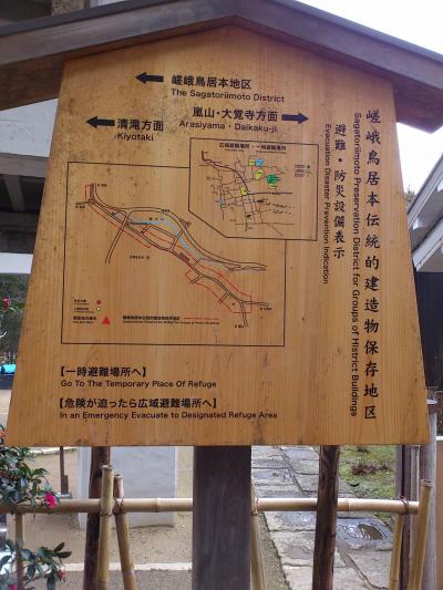 あだし野念仏寺から東海自然道を下って、祇王寺に向かいました。愛宕街道という名前の道の両側には、古い町並みがそのまま残っています。1月という季節でしょうか、観光客は誰もこの道を歩いていませんでした。道の左側には古民家を再利用してた京都市嵯峨鳥居本町並み保存館があり、入場無料です。