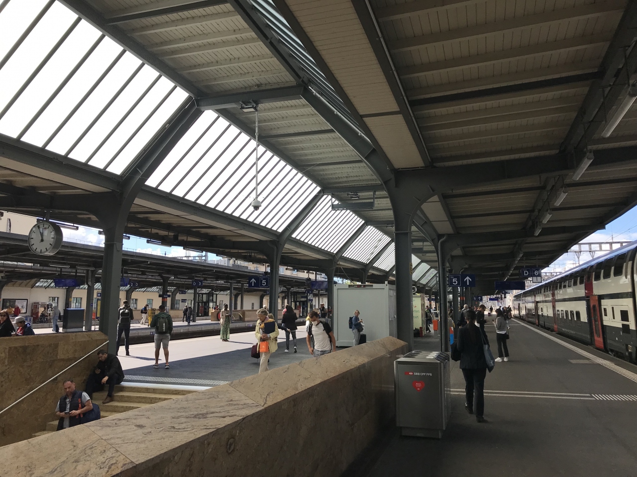ヨーロッパだと中央駅という表示が多いですが、コルナバン駅という名前で少しわかりにくいです。ジュネーブ空港からは1駅でGenevaといいう表示になっているので、まだこちらの方がわかりやすいと思います。レマン湖の近くにあり、観光にも便利な駅です。