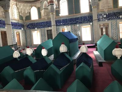 アヤソフィアの南西にあり、近くにはムラト 3 世やメフメト 3 世の墓もあります。セリム 2 世は有名なスレイマン大帝の息子で、酔っ払い皇帝との別名があるあまり良いスルタンではないようです。建物は正方形の外殻と八角形の内殻からなる複雑な構造をしています。 セリム 2 世の石棺だけでなく、身内の40体ぐらいの石棺も一緒に眠っています。あまり良いスルタンではない割には立派なお墓でびっくりしました。