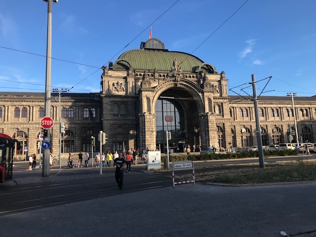 フランクフルト空港駅からICEに乗って約2時間半で、このニュルンベルク中央駅に到着しました。改札がないので日本の駅に比べて解放感があります。建物はいかにもドイツの歴史的な建物という感じです。お店もたくさんあって使いやすい駅だと感じました。