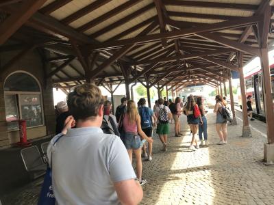 ニュルンベルクからDBの普通電車を2階乗り換えてようやく到着しました。想像していたのと違って、田舎の駅という感じでした。日本のローカル線の駅のイメージに近いです。コインロッカーがあったので荷物を預けようと思いましたが、故障していて使えず困りました。飲み物の自動販売機も使えませんでした。