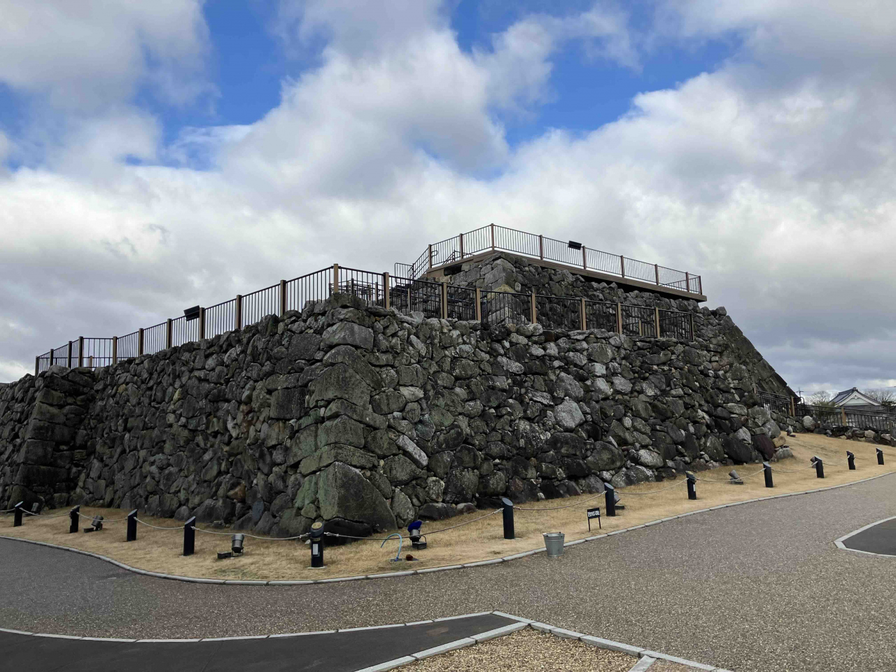 郡山駅から坂を登って行き、郡山高校の前を右に曲がって場内に入るとまずは柳澤神社があります。その奥にこの郡山城天守台展望施設があります。郡山城は記録が少なく、天守閣があったか不確かだったそうですが、調査の結果、やはり天守閣があったことがわかったそうです。この天守台は展望施設というだけあって、360度見渡せるとても眺めの良い場所でした。