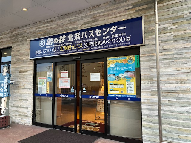 別府観光で宿泊したホテル(西鉄リゾートイン別府)の1階にありました。ここから地獄めぐりなどの亀の井バスのバスツアーが出ています。別府は別府駅と北浜がバスの発着の中心だと思いますが、少し長い距離のバスは北浜が中心だと思います。