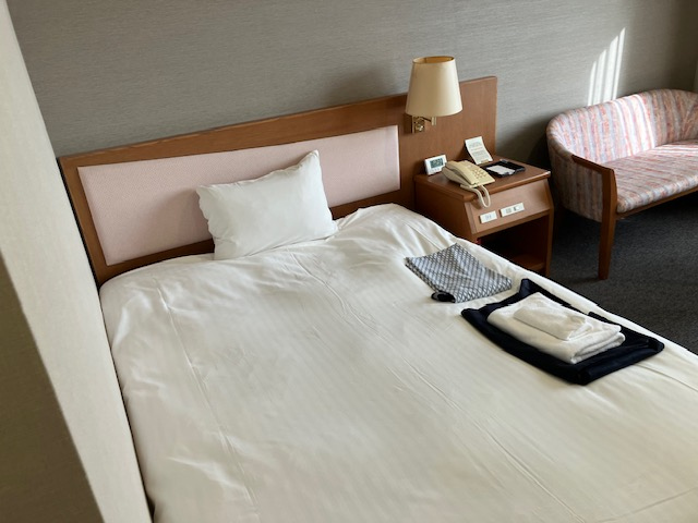播州赤穂駅からは距離があるので、ホテルの無料の送迎バスを利用しました。帰りもホテルの送迎を利用しました。客室はビジネスホテルのような感じですが、天然温泉が付いていますので観光でも十分に使えると思います。ホテルから歩いて行ける距離にコンビニや飲食店もあります。値段もそこそこでしたので、天然温泉が付きの良いホテルだと感じました。