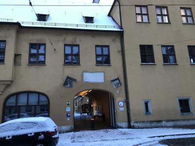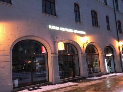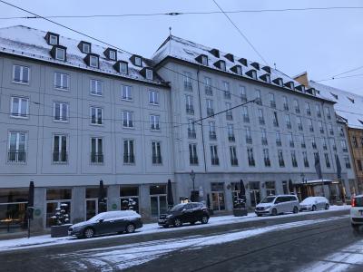 アウクスブルク中央駅の駅舎を出て、トラムが走る通りに出たら通りを渡らずに右に行くとあります。建物自体にはホテルの標識がないし、入口も小さいので少しわかりにくかったですが、駅から歩いて1分と駅近です。インターシティの会員であれば、ローカルの公共交通機関(バス、トラム)の無料チケットがもらえます。