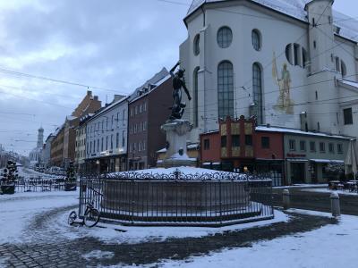 アウグスブルク大聖堂の前にあった噴水です。3人の人物の像がありますが、この3人はアウグスブルクの守護神と呼ばれているそうです。どれが誰かまでの詳しいことはわかりませんでしたが、大聖堂の前なので、守護神の像はお似合いだと思いました。