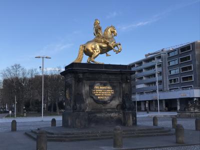 黄金の騎馬像がある広場です。旧市街からアウグストゥス橋をわたって行ったのですが、途中から黄金の騎馬像が見えてきました。広場としてはそんなに広いものではなく、この黄金の騎馬像があるのだけが特徴の広場です。