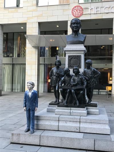 ブリュールのテラスを散策していた時に見つけました。Ernst はドイツの彫刻家でドレスデンのアカデミーのメンバーだそうですが、全然知りませんでした。胸像のまわりには4人の若者が座っています。そのまわりには花壇があり柵で覆われています。とても素敵なデザインでした。