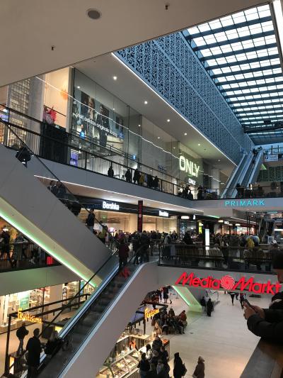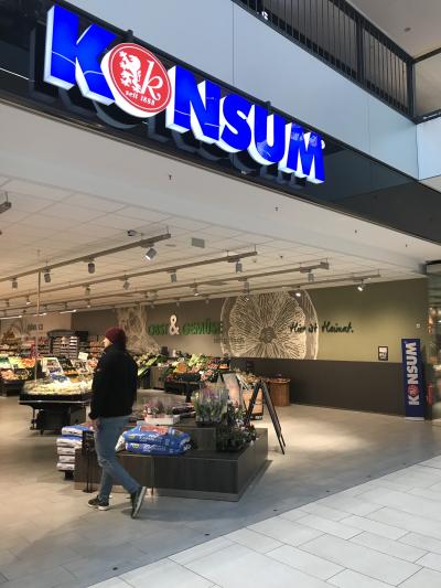 ドレスデン中央駅から観光の中心の旧市街へ向けて延びるプラガー通りを歩いていくと、最初は広場のようなひらけた場所ですが、そのうちにショッピングビルやデパートが並ぶ場所になります。このCentrum Galerie Dresdenはその中のショッピングモールの一つで、駅からだと左側にありました。モールなので各種のお店が入っていましたが、スーパーマーケットを利用しました。