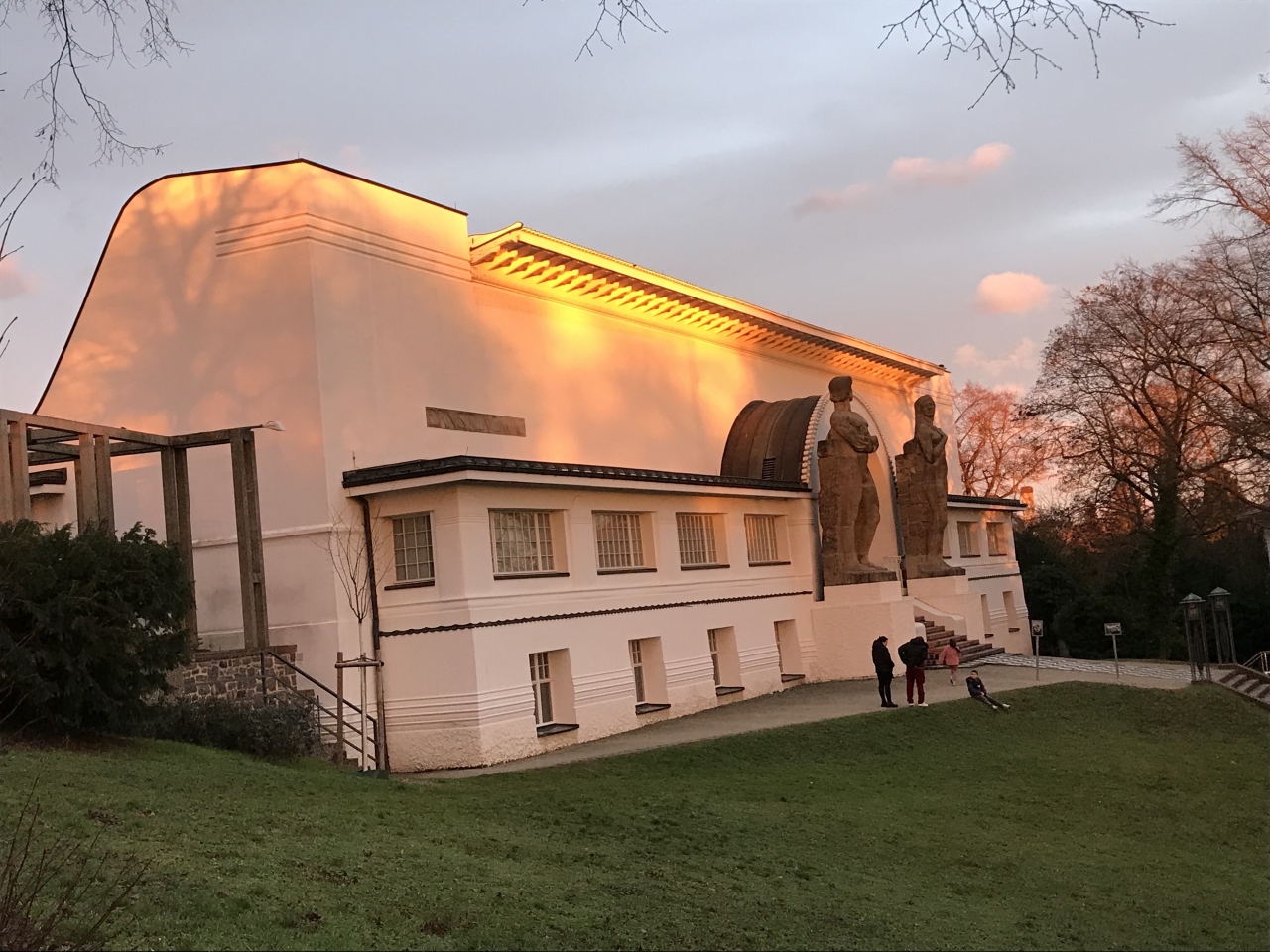 ダルムシュタット中央駅からバスに乗ってマチルダの丘に行きました。マチルダの丘には 結婚記念塔やロシア教会など印象的な建物がありました。この芸術家コロニー美術館はマチルダの丘の奥の方にありました。入口の像が印象的です。こんな変わった建物を建てた芸術家は変わった人だったんでしょう。