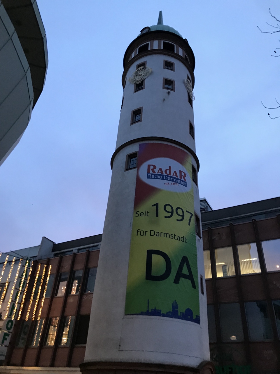 ダルムシュタットの市街の中心部にあった塔です。元々はダルムシュタット要塞の一部だったようですが、要塞を取り壊し、今のルイゼン通りを作ったときに、この塔だけが残されたそうです。今はぽっんとこの塔だけが残っていて不思議な感じがしますが、ダルムシュタットの歴史を刻んだ塔なんですね。中は螺旋階段になっていて登れるらしいです。