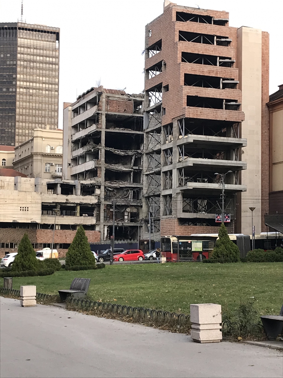 政府機関、官庁の建物が並ぶ通りです。コソボ紛争の時にセルビア制裁のために、NATO軍が空爆した国防省のビル(NATO空爆ビル)を見に行きました。周りは立派な政府機関、官庁の建物ですが、このビルだけはコソボ紛争の時間が止まっています。このビルを見に行く以外にこのクネズ ミロシュ通りに行くことはなののではないでしょうか。