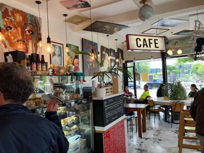 ニューリージェントストリートにあったカフェです。一番北側にあったカフェだと思います。行きは素通りでビクトリアスクエアやタウンホールを見た後にニューリージェントストリートに戻って来て、ここで一休みしました。ニューリージェントストリートにはたくさんのおしゃれなカフェがありますが、ここはそのうちの一つです。コーヒーを飲んでる時にトラムが通り抜けましたが、絵になる後継でした。