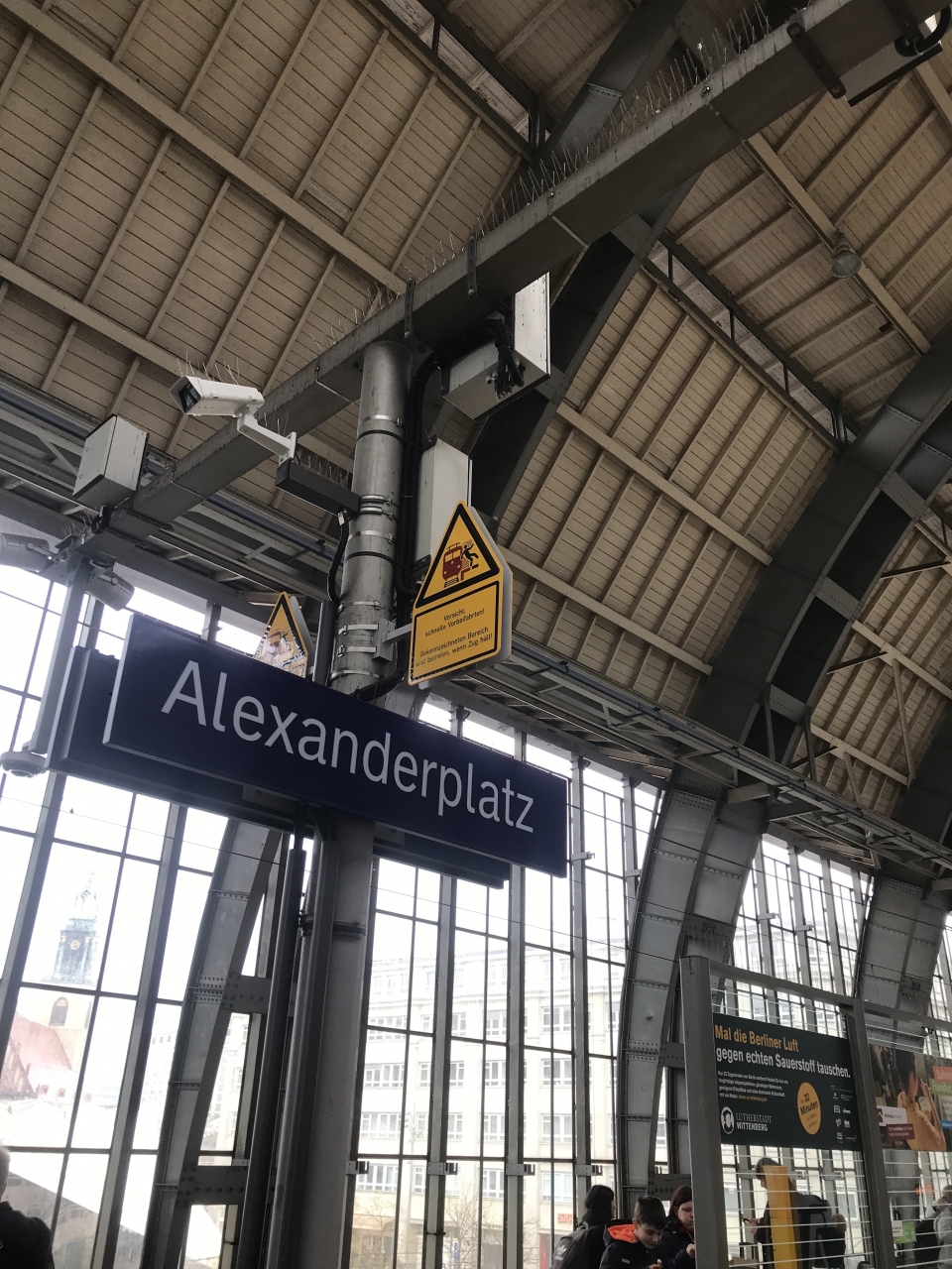 ブランデンブルク国際空港からSバーンに乗って30分ほどで到着しました。ペルガモン博物館に行くのが目的です。ペルガモン博物館には次のHackescher Markt駅の方が近いのですが、コインロッカーがあるのはこのアレクサンダー広場駅のようなので、ここでスーツケースを預けて徒歩で行きました。テレビ塔や聖マリア教会などが途中にあります。