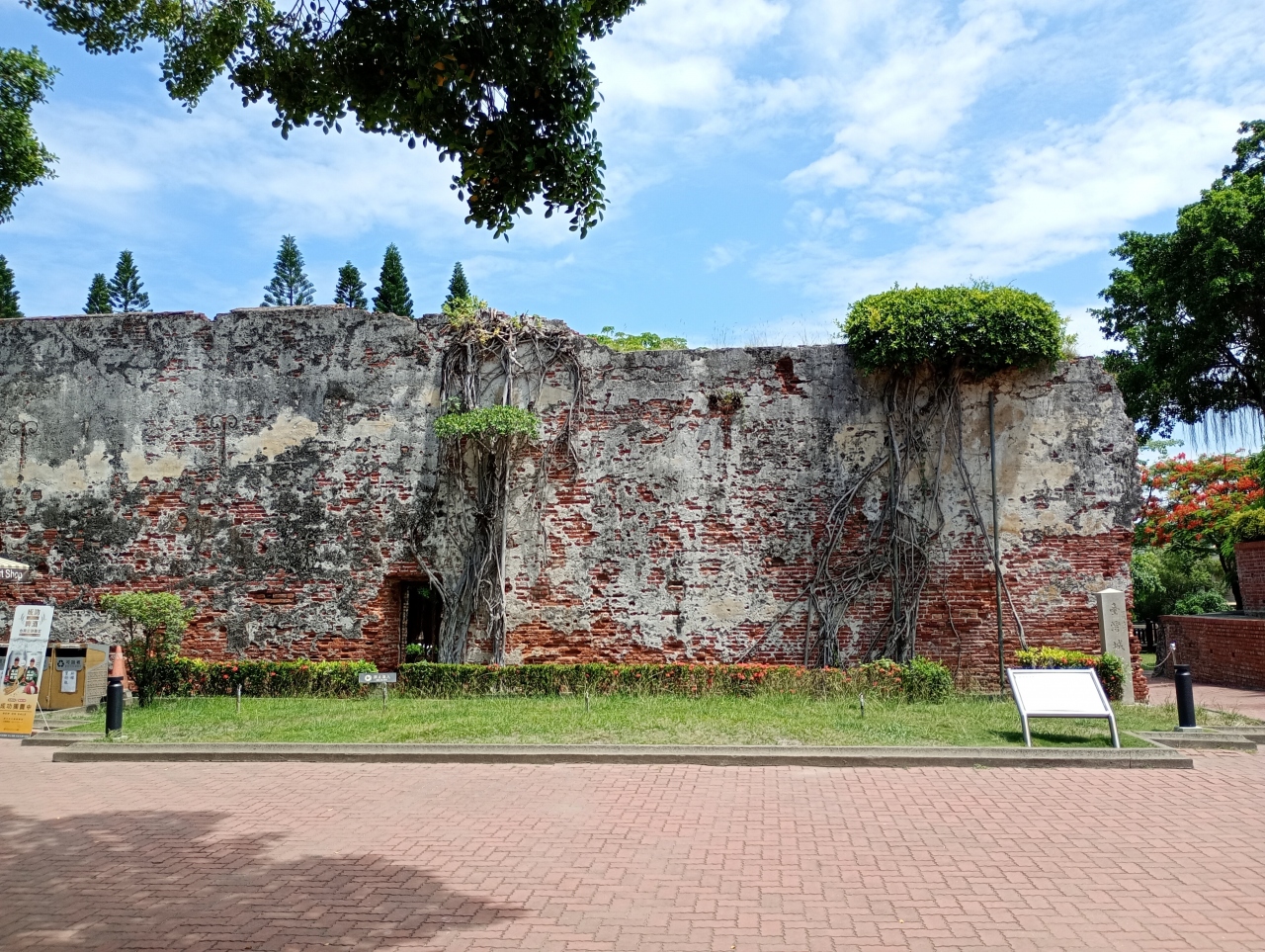 台南の有名な観光地です。台南孔廟や林百貨店がある湯徳章紀念公園周辺から歩いて行きました。オランダ軍が台湾を征服した時に作った城跡だそうですが、そんなに西洋風ではありません。安平古堡がオランダ人によって建造された要塞で、この赤崁楼は統治を行った場所です。