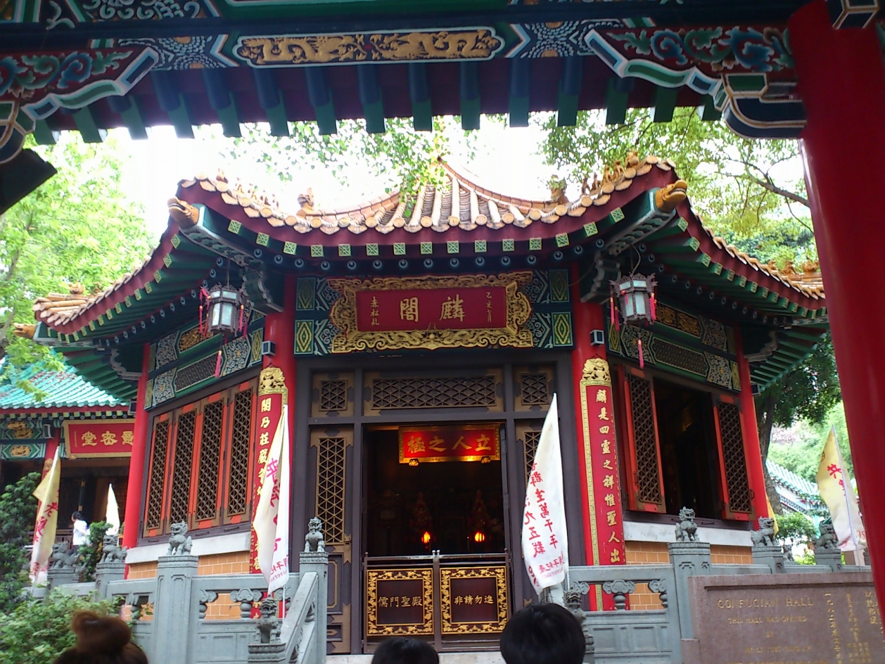 香港の郊外にあるパワースポットの嗇色園黄大仙廟の御本殿です。ここには主祀である黄大仙の肖像画が祀られています。本殿の前には、無数の赤と黄色の提灯がぶら下がっていて、とても不思議な雰囲気を醸し出しています。