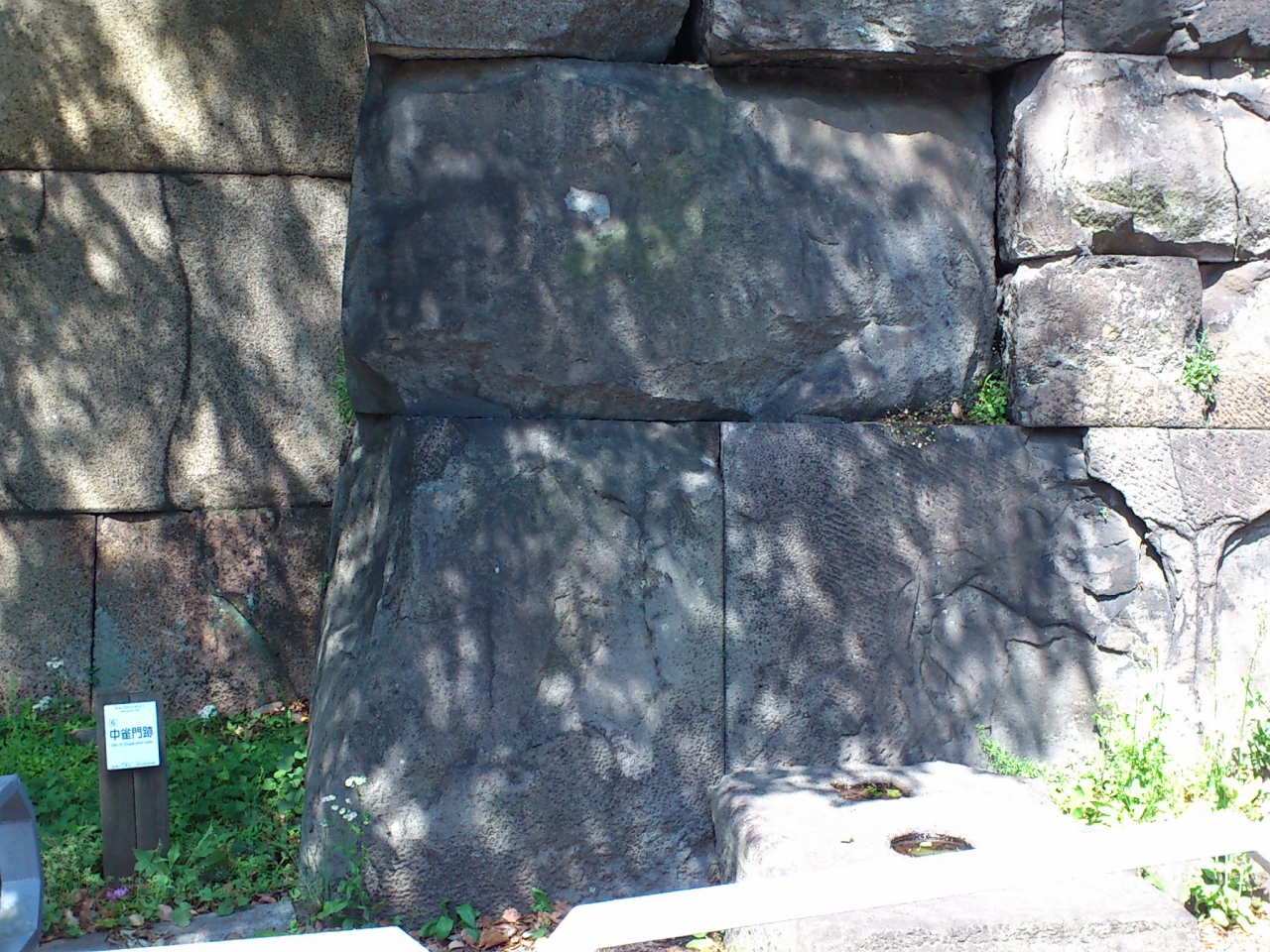 東御苑の本丸へ大手門から入場すると、幾つかの門や門の跡を通りますが、本丸跡へたどり着く最後の門です。中之門跡は大変立派な石垣が残っていますが、この中之門跡の石垣もなかなか立派です。地面に小さな中之門跡という看板がないとただの石垣だと素通りしてしまうかもしれません。