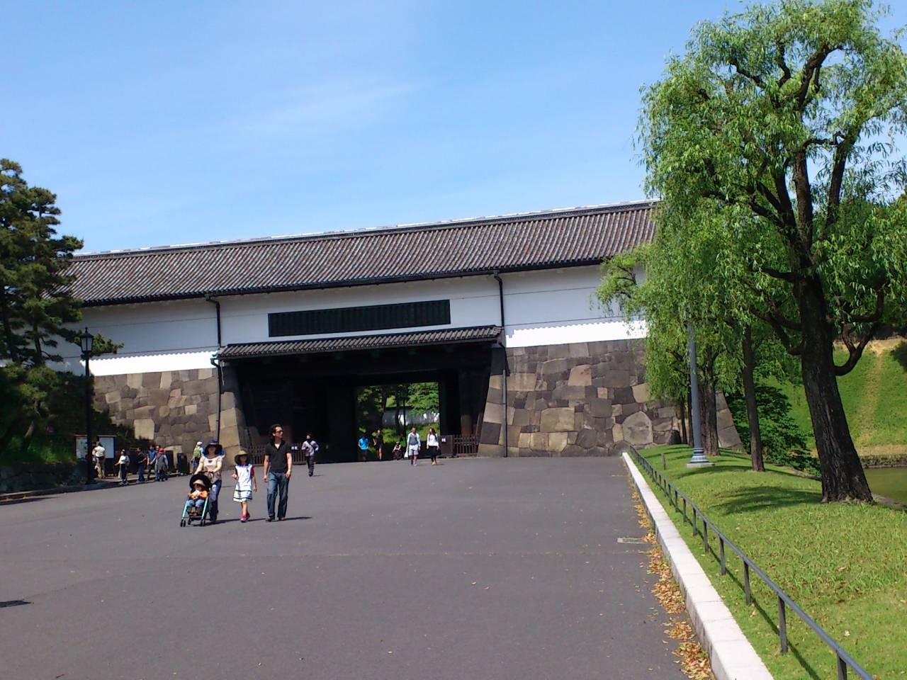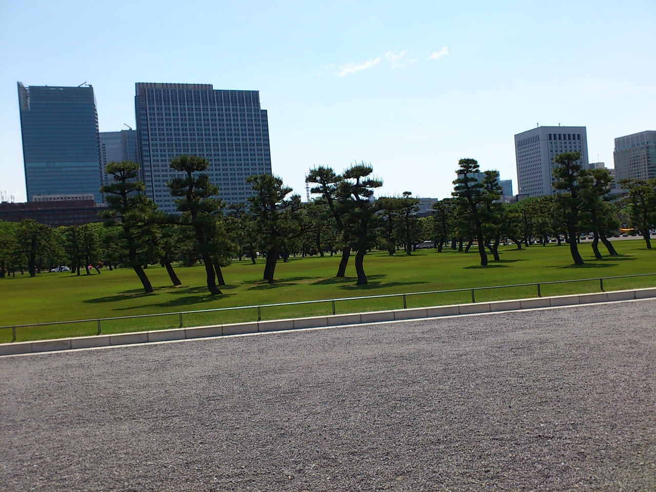 皇居の前に広がる広場です。テレビで一般参賀のニュースなどで見ると、すごい人出ですが今回行って見ると、二重橋のあたりに観光客が固まっているだけで、この広場自体にはほとんど人がいませんでした。大手門から二重橋へ歩いて移動しましたが、途中は砂利道です。