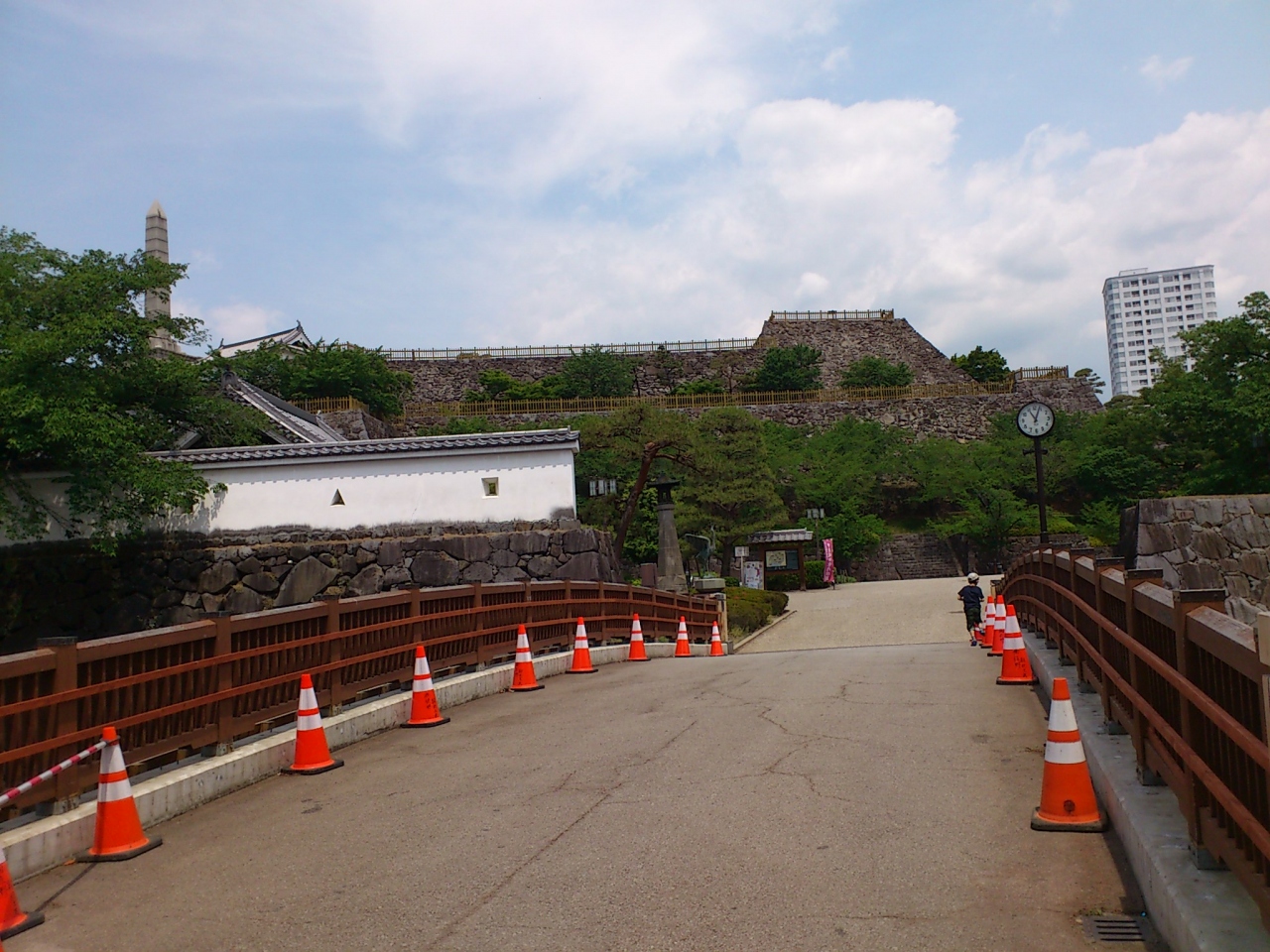 舞鶴城公園(甲府城跡)の正面入口に架かる木造の橋です。現存する甲府城には北側にしかお堀がないため、お城の橋はこの橋しかないと思います。この橋から見上げる甲府城は、立派な石垣とその上にそびえる天守台などが見え、素晴らしい景色です。