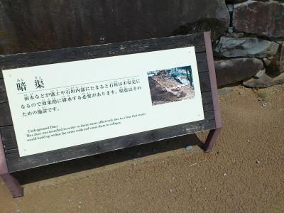 甲府城の本丸跡の北側の腰石垣にあります。雨水などで盛土や石垣内部に水がたまると石垣が不安定になるので、効果的に水を排水するための施設と案内板には書いてあります。外から見ると、ちょっとした穴が石垣に開いてるだけしかわかりません。