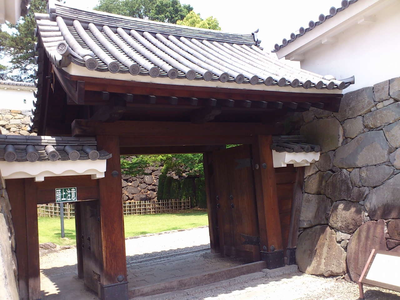 今は舞鶴城公園として整備されている甲府城の南西にある門です。近くには山梨県庁や甲府市役所などがあります。甲府城の門は鉄門など立派な門が幾つかありますが。どれも明治初期に壊された後に再建されたもののようです。この鍛冶曲輪門も平成8年に再建されたそうです。