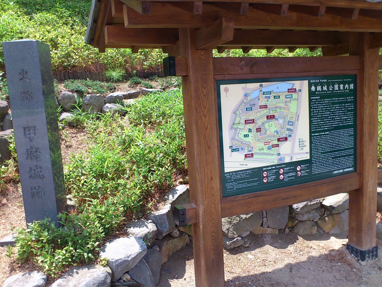 今は舞鶴城公園として整備されています。車で行ったのですが、なぜか2箇所ある公園の駐車場が閉鎖されていて使えず、近くのコインパーキングを利用することになりました。甲府城は豊臣秀吉の義理の弟の浅野長政が秀吉の命で関東の徳川家康対策に建てた城で、立派な石垣が残っていますが、建物は最近になって再建された稲荷櫓しかありません。天守台から望む甲府の風景は素晴らしかったです。