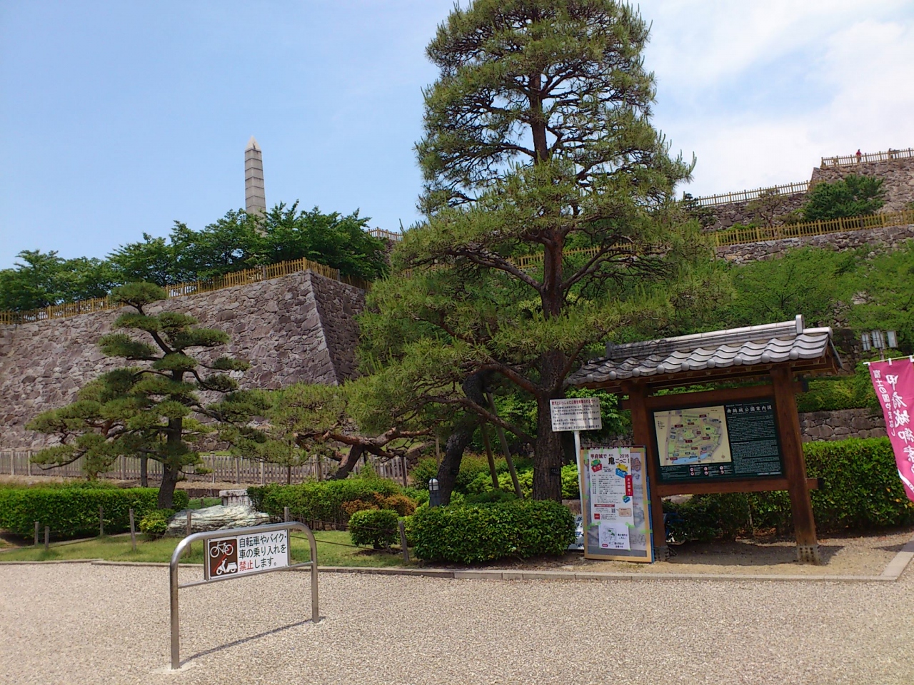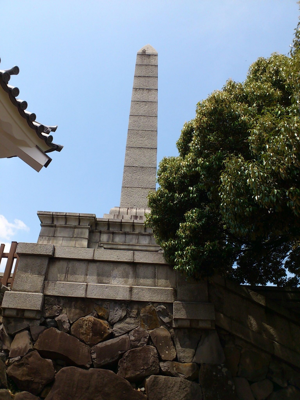 甲府城跡の舞鶴城公園には、エジプトのオベリスクみたな塔が建っていて、遠くからもよく目立ちます。遠くから見たときには、お城には似合わない不思議なものに思えましたが、鉄門をくぐって城内に入って説明書きを読むと、山梨県の御料林が県に下賜されたことを記念して建てられた塔だそうです。