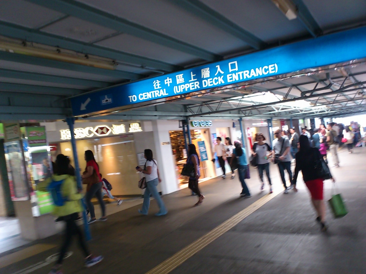 本島と香港島を結ぶスターフェリーの本島側の乗り場です。近くには時計台がそびえていて、前はバスターミナルになっています。表示に従って進んで行くと、問題なくフェリーに乗ることができました。このフェリーも他の交通機関と同じように香港版のスイカのようなオクトパスカードで乗船できます。