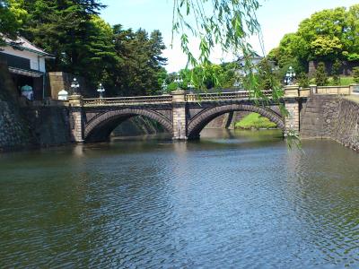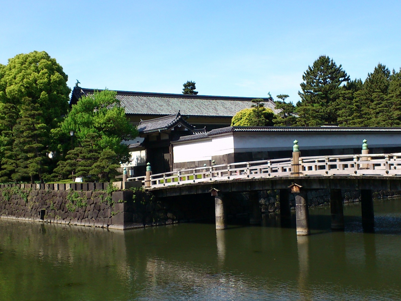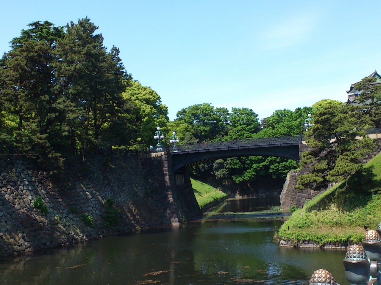 めがね型をした美しいアーチを描いた石橋です。てっきりこの橋が二重橋だと勘違いしていました。多分同じような間違いをしている観光客が多いのだと思いますが、写真を撮る人が多くいました。二重橋はこの橋の奥にある鉄橋の方だそうです。この橋の向こうにあるのが正門です。橋の欄干には、見事な電燈があります。