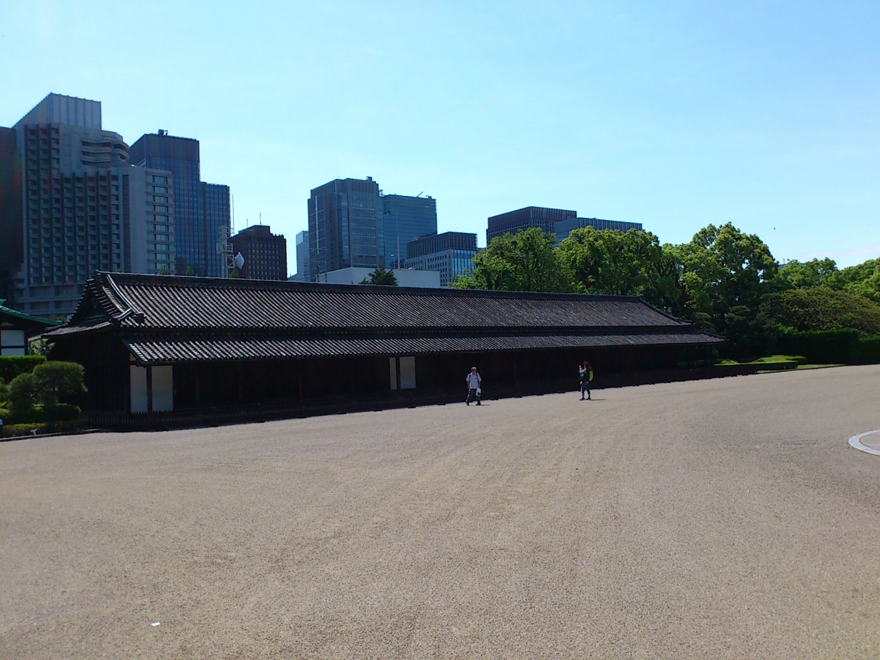 見事な石垣の跡が残る大手三之門跡の前にある長い建物です。江戸城本丸最大の番所すなわち検問所です。甲賀組、伊賀組、根来組、二十五騎組の4組が交代で詰めていたそうで、全部で100人居たことから、この名前がついたそうです。