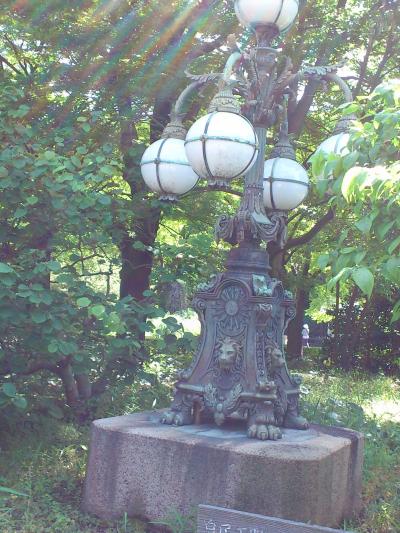 皇居東御苑二の丸の百人番所の近くに置かれています。もともとは皇居正門の石橋の欄干にあったものだそうですが、古くなったので、新しいものに交換され、この場所に移されたものの一つです。確か岐阜の明治村を訪れた時に同じものが置いてあった記憶があります。