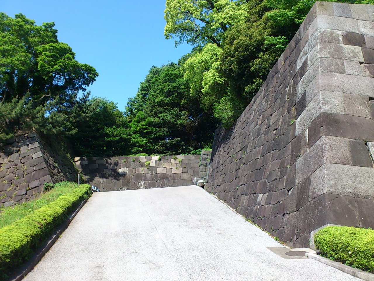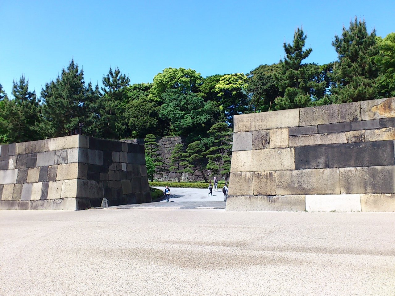 皇居の大手門から入ってしばらく行くと、見事な石垣があります。かなり大きな四角い石でできている石垣で、真ん中に人が通る場所があるので、元は門だった場所である事がわかります。江戸時代はここで御三家以外は籠から降ろされたそうです。