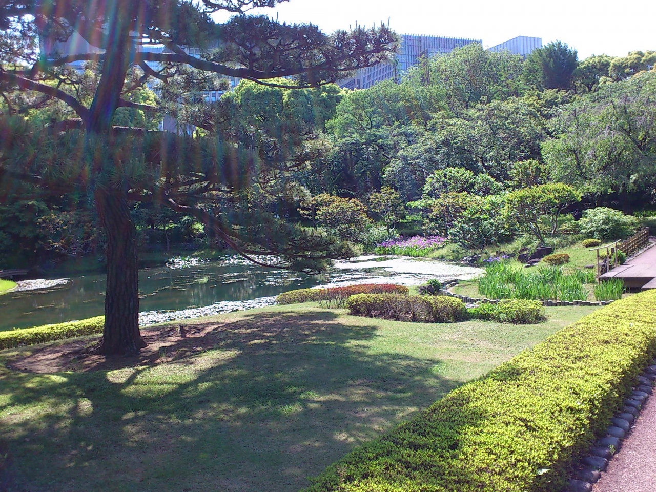 皇居東御苑の江戸城本丸跡の広場から二の丸雑木林を通って行くと、綺麗な庭園に出ます。真ん中に池があって、その周りを回遊できる構造になっています。あちこちにベンチが置かれていて、ゆっくり庭園を眺めることができるようになっています。そんなに観光客も多くなく、庭園を鑑賞できます。