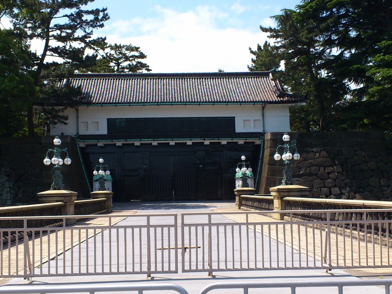 めがね型をした美しいアーチを描いた石橋の先にある門です。私もそうでしたが、この橋をてっきり二重橋と勘違いしていました。この橋は閉ざされていたので通ることはできませんでしたので、当然この門をくぐっていません。立派な電燈に飾られた正門石橋の向こうの門をくぐってみたいものです。