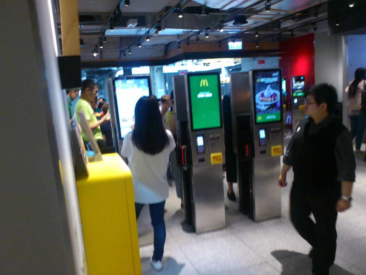 香港の地下鉄の金鐘(アドミラルティ)という駅のショッピングセンターの1Fの道路沿いにあるマクドナルドです。香港ドルの現金が残り少なくなったので、クレジットカードが使えるお店を探したのですが、なかなか見つからずに最後はこのマクドになりました。日本ではまだ行われていないと思いますが、自分で好きな様に具やサブを選べる様になっています。専用の機械があります。