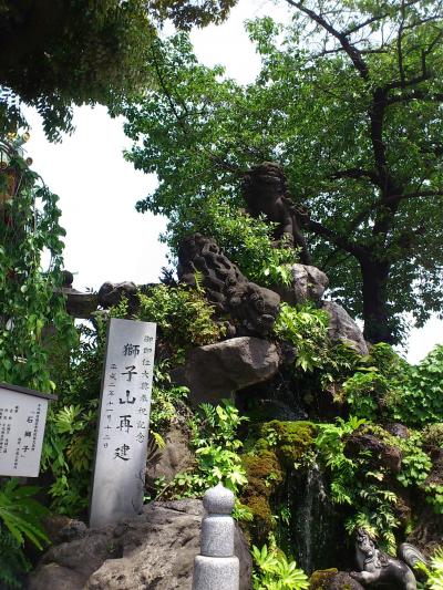 神田明神の本殿の右前あたりにあります。もとは江戸時代末期のものが関東大震災で崩壊してしまい、平成の御即位大典奉祝記念として再建されたものだそうです。表示も再建の獅子山となっています。獅子は子供を千尋の谷に突き落とすということを再現しているそうです。